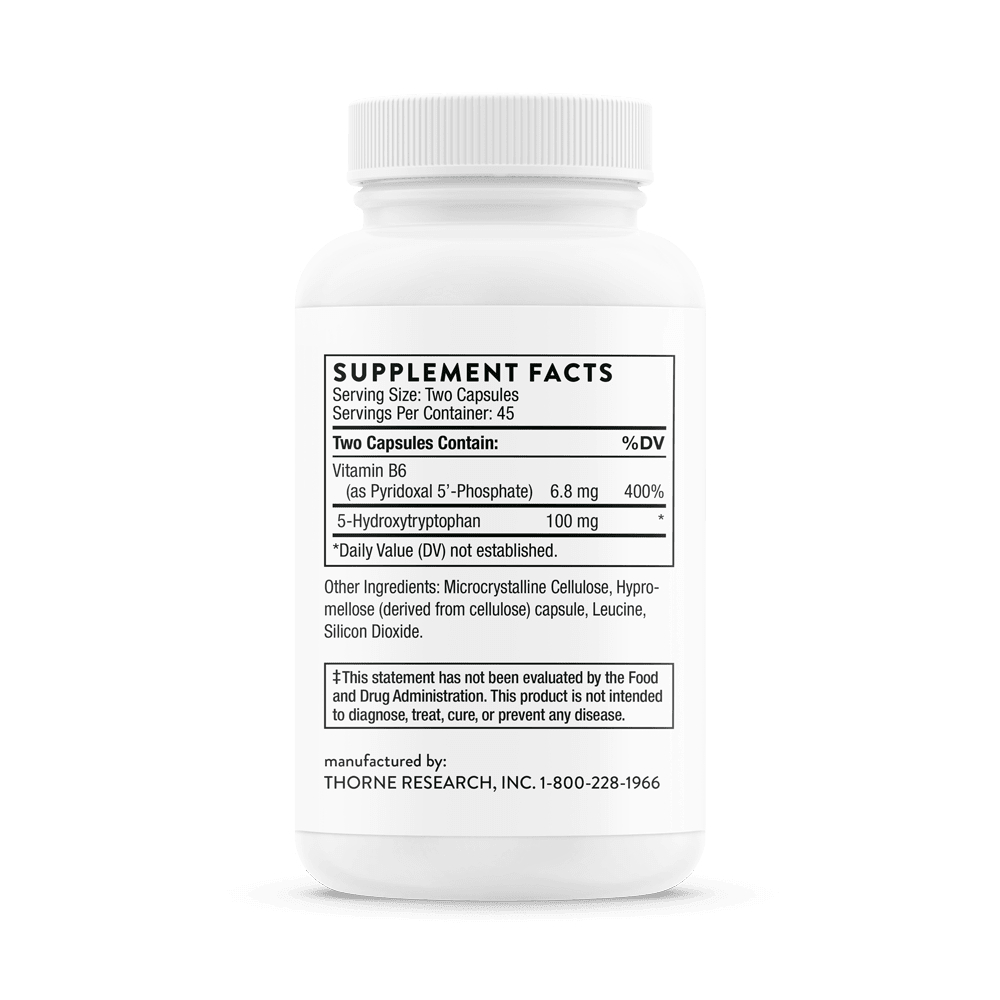 Each capsule contains 50mg of 5-HTP, along with pyridoxal 5'-phosphate, the active form of vitamin B6, which is essential for serotonin synthesis.