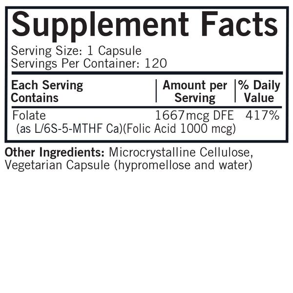 Each bottle contains 120 capsules, with each capsule providing 1mg of 5-MTHF
