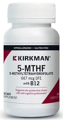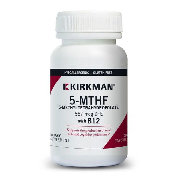 5-MTHF is essential for the production and maintenance of new cells but supplementation is required as the body cannot produce it. Kirkman® offers 5-MTHF, a highly bioavailable form of folate, combined with Vitamin B12. Vitamin B12 supports nerve health and blood cell function*