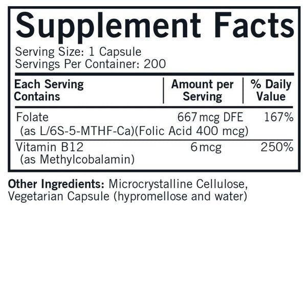 Folate (as L/6S-5-MTHF-Ca) (folic acid 400mcg), Vitamin B12