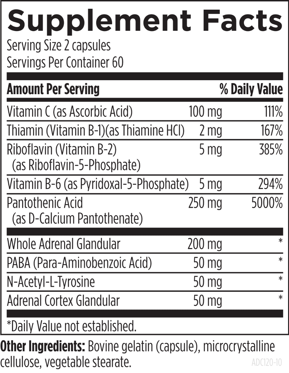 Adrenal complex is a glandular based formula specifically designed to support optimal adrenal function.