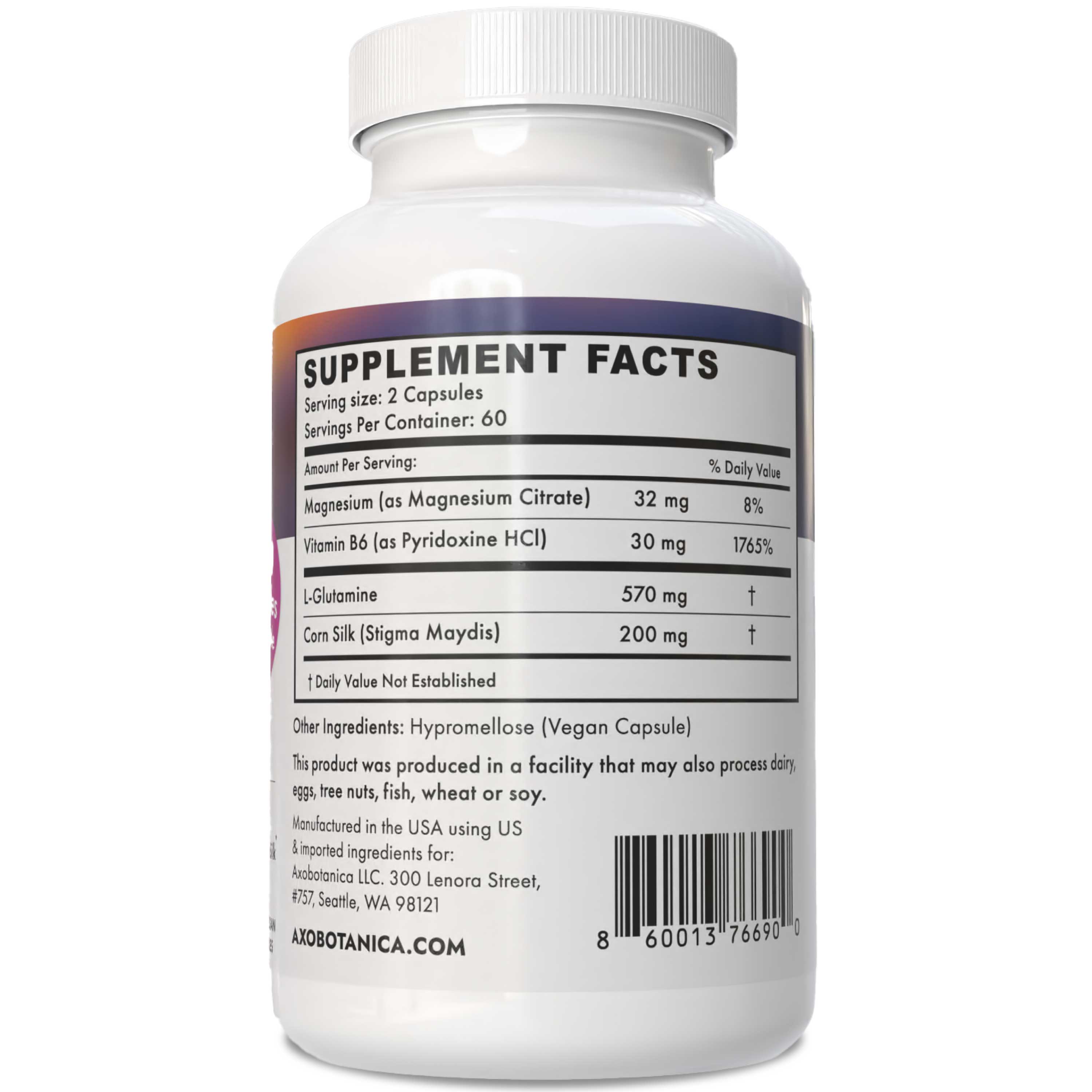 Vitamin B6, Magnesium Citrate, L-Glutamine, Cornsilk