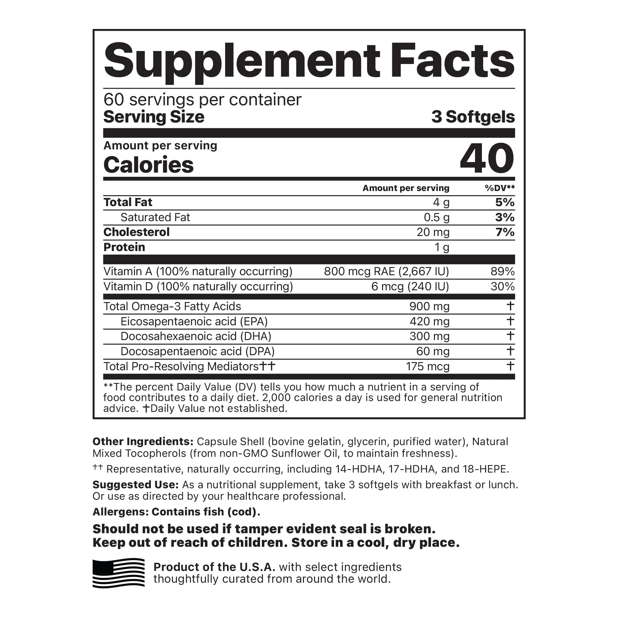 It delivers essential Omega-3 fatty acids, Pro-Resolving Mediators (PRMs) and naturally occurring Vitamins A & D to support immune function, brain health, eye health and circulatory well being*