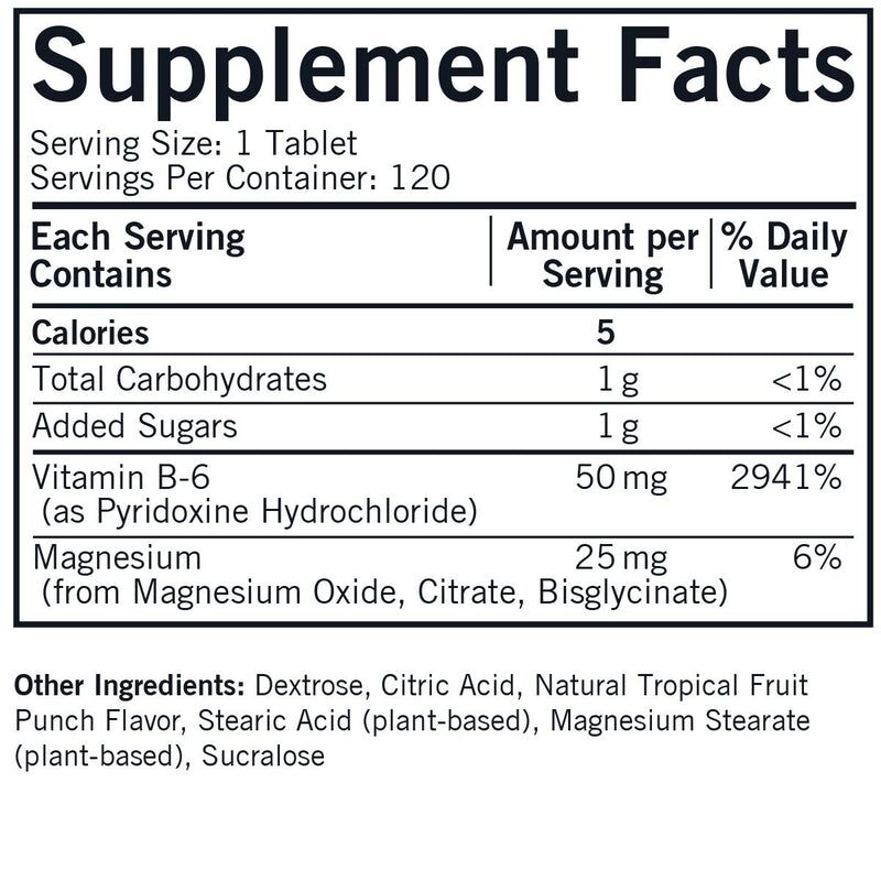 The wafers are formulated with an optimal ratio of vitamin B6 to magnesium to align with typical physician recommendations for high-potency B6 and magnesium supplementation