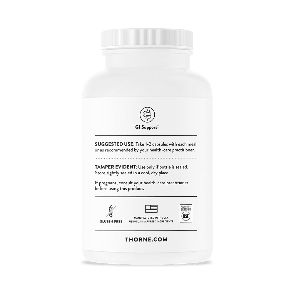 Thorne's Betaine HCl & Pepsin, sourced from porcine, supports healthy digestion by enhancing stomach acid levels to improve protein breakdown and nutrient absorption.* Proper HCl levels also help prevent maldigestion, reduce food allergies and support overall gut health.* This product is third-party tested to ensure purity and safety, free from harmful contaminants*