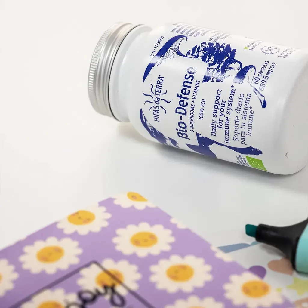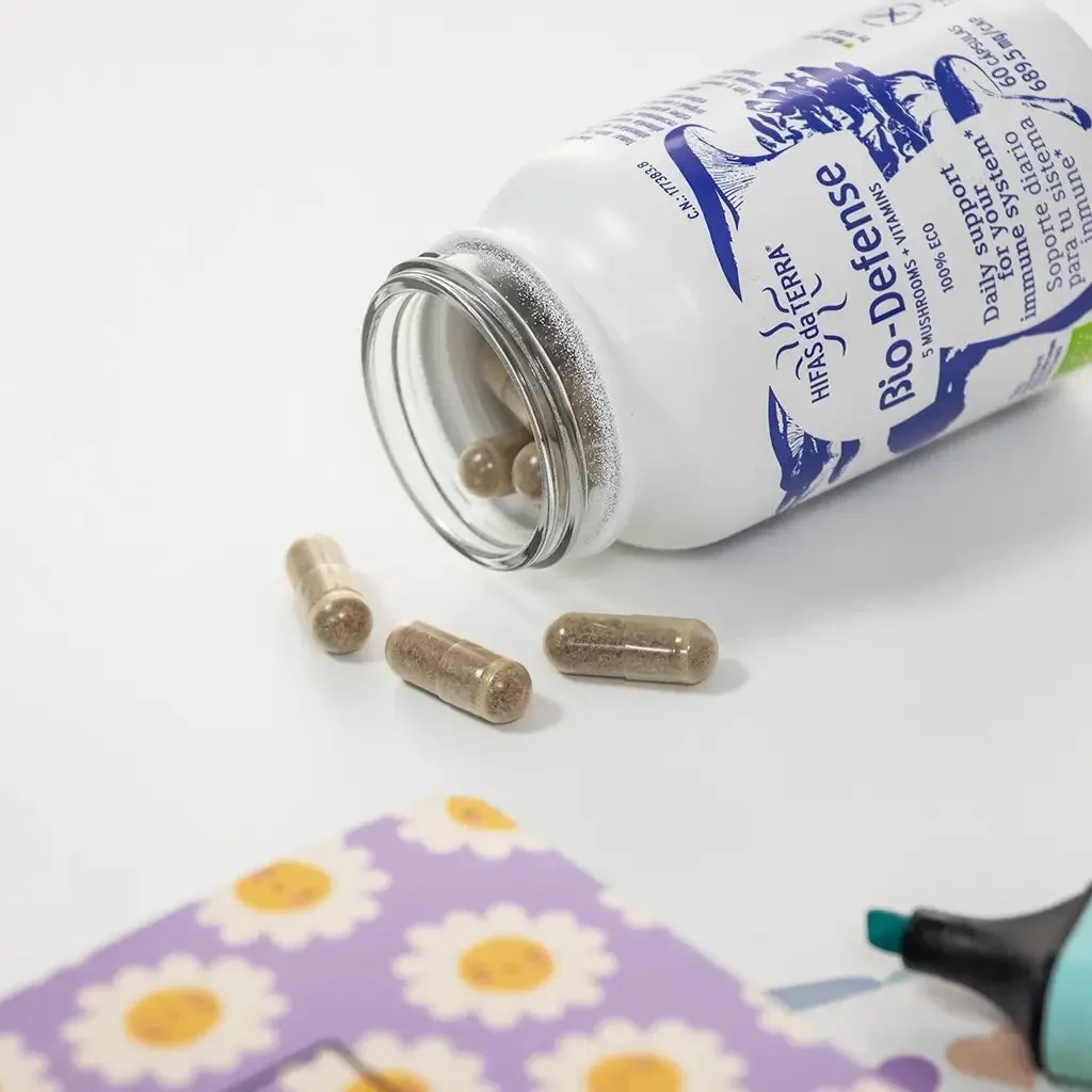 Hifas da Terra Bio-Defense is a premium immune support supplement made with a blend of 5 medicinal mushrooms and essential vitamins.