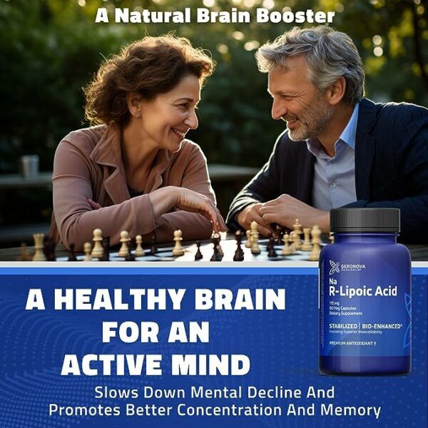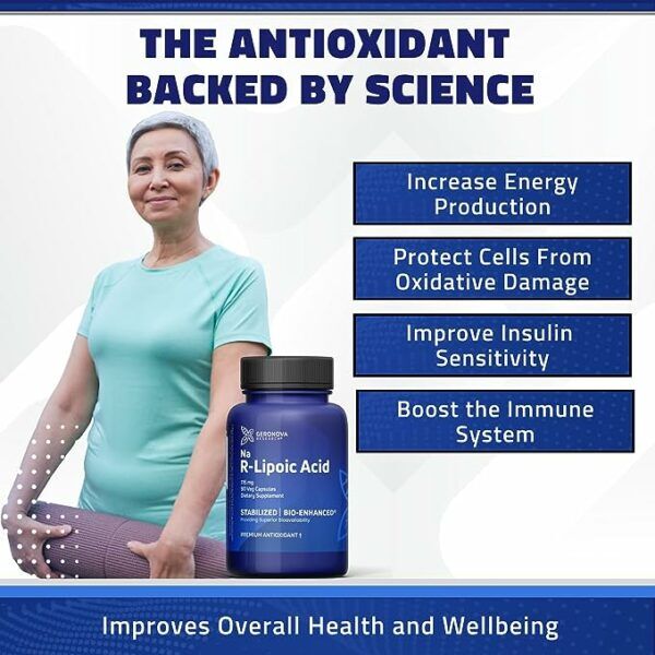 R-ALA helps soothe pain and numbness in the limbs, supports heart health by improving blood flow, boosts brain function by enhancing concentration and memory, acts as a powerful antioxidant, removing toxins and enhancing overall wellness