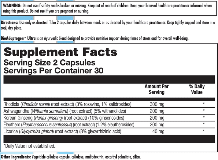 BioAdaptogen* Ultra is an Ayurvedic blend designed to provide nutritive support during times of stress and for overall well-being.