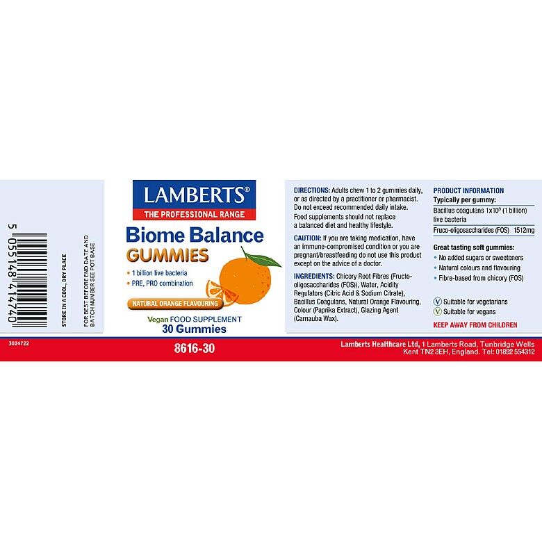 Lamberts® Biome Balance Advanced gummies contain one billion live bacteria of a well-researched strain, Bacillus coagulans.