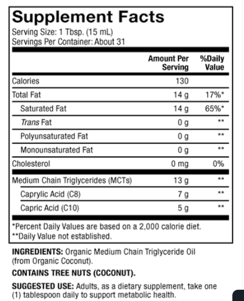 Organic Medium Chain Triglyceride Oil (from Organic Coconut).