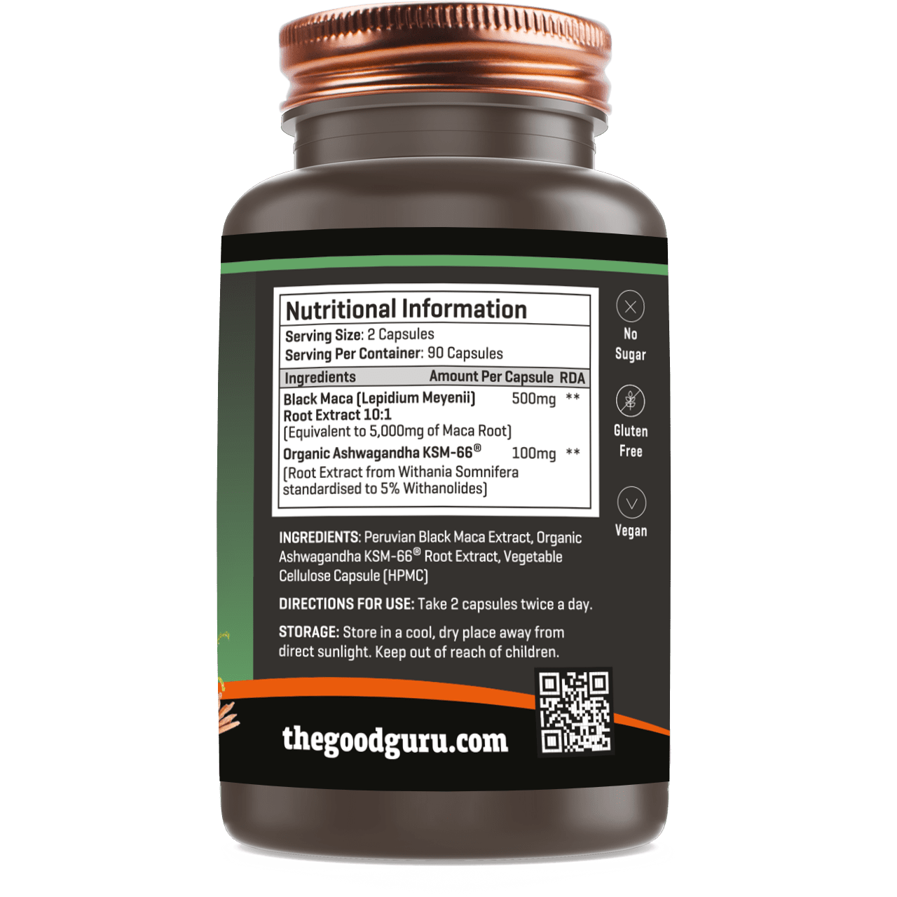 The Good Guru`s Black Maca Extract Powder with Organic Ashwagandha KSM66® (600 mg Per Capsule).