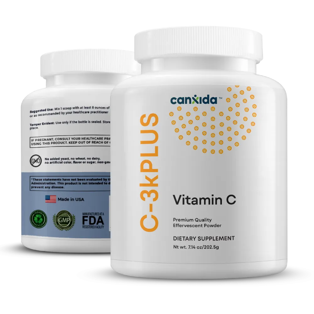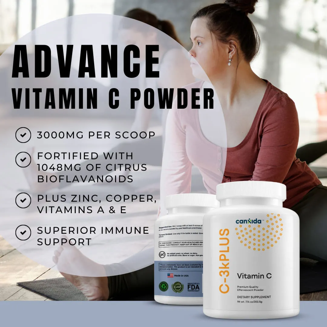 Vitamin C-3K Plus is a high dose Vitamin C powder (3000mg per scoop) that supports immunity, curbs sugar cravings and enhances antioxidant protection. Fortified with citrus bioflavonoids, zinc, copper and vitamins A and E, it provides superior absorption, a natural citrus flavourand isgentle on the digestive system, making it ideal for immune support year round