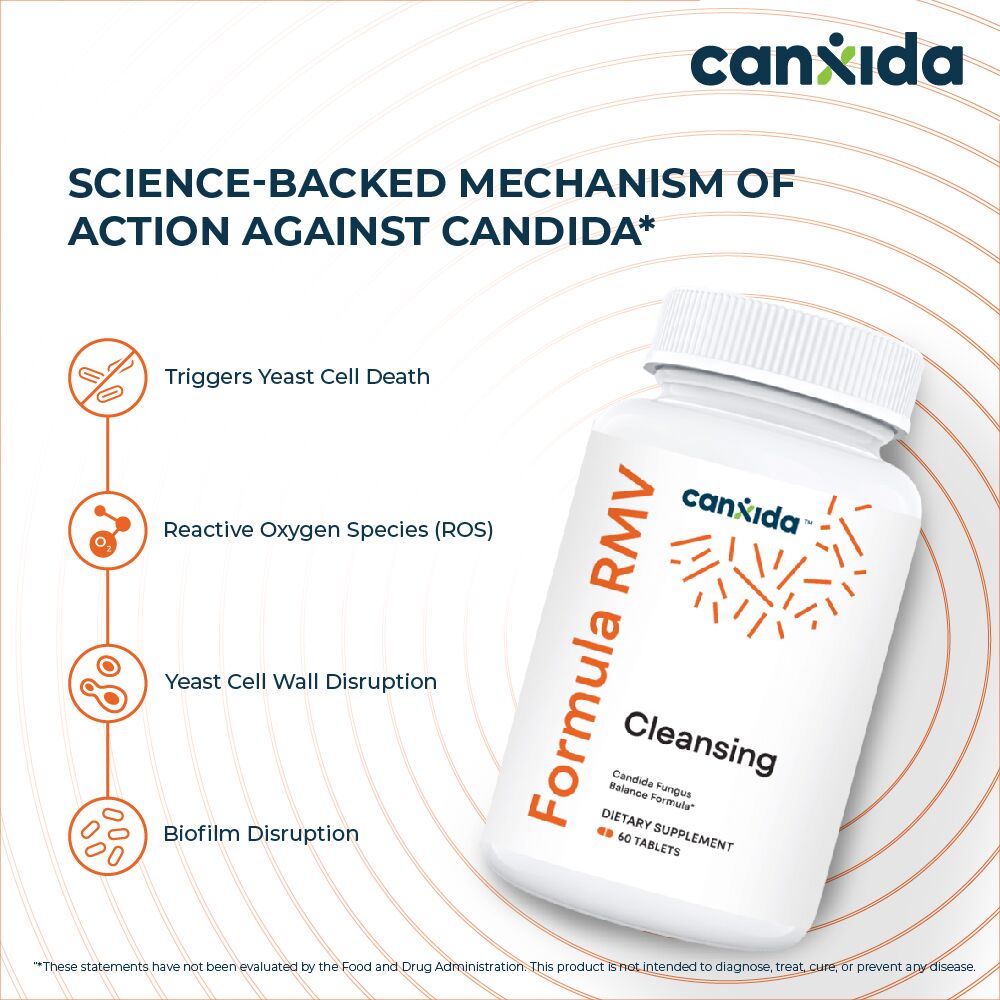 CanXida Remove Candida cleansing Formula RMV, CanXida Remove is a unique high-potency, sustained-released, antifungal, antibacterial and anti-parasite formulation for candida yeast infection manufactured by CanXida Health, experts in candida yeast infections. CanXida Remove Advanced Delivery System Supports: