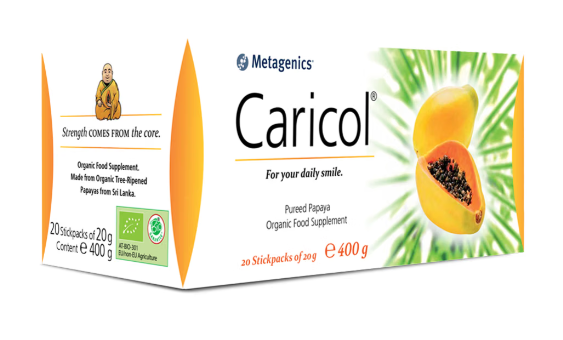 Caricol®* is an entirely natural, organic product made from the pulp of tree-ripened papaya, prepared traditionally. Papaya has historically been used to support optimal bowel function. Studies have also shown it to have soothing effects on the stomach and digestive tract.