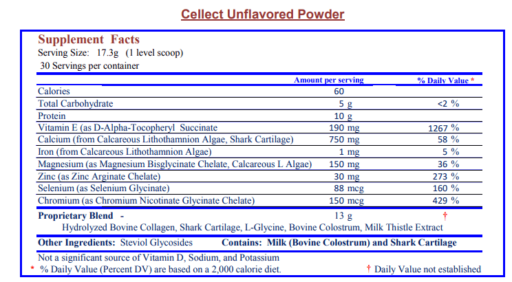 Contains the proprietary CELLECT™ blend in an unflavoured powder mix formula.