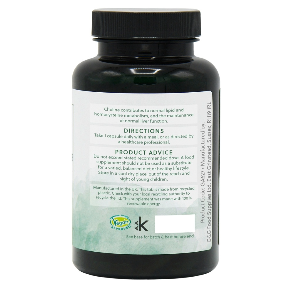 This choline and Inositol supplement offers a potent blend, with each vegan capsule delivering 250mg of choline and 250mg of inositol, free from any unnecessary additives