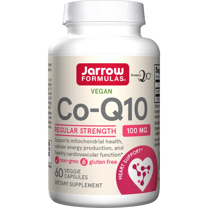 Jarrow Formulas® Co-Q10 (Ubiquinone) is an antioxidant that aids normal mitochondrial function, the energy centers of cells. As levels in energy-rich tissues, like the heart, decrease with age, Co-Q10 supports mitochondrial health, cellular energy production and cardiovascular function