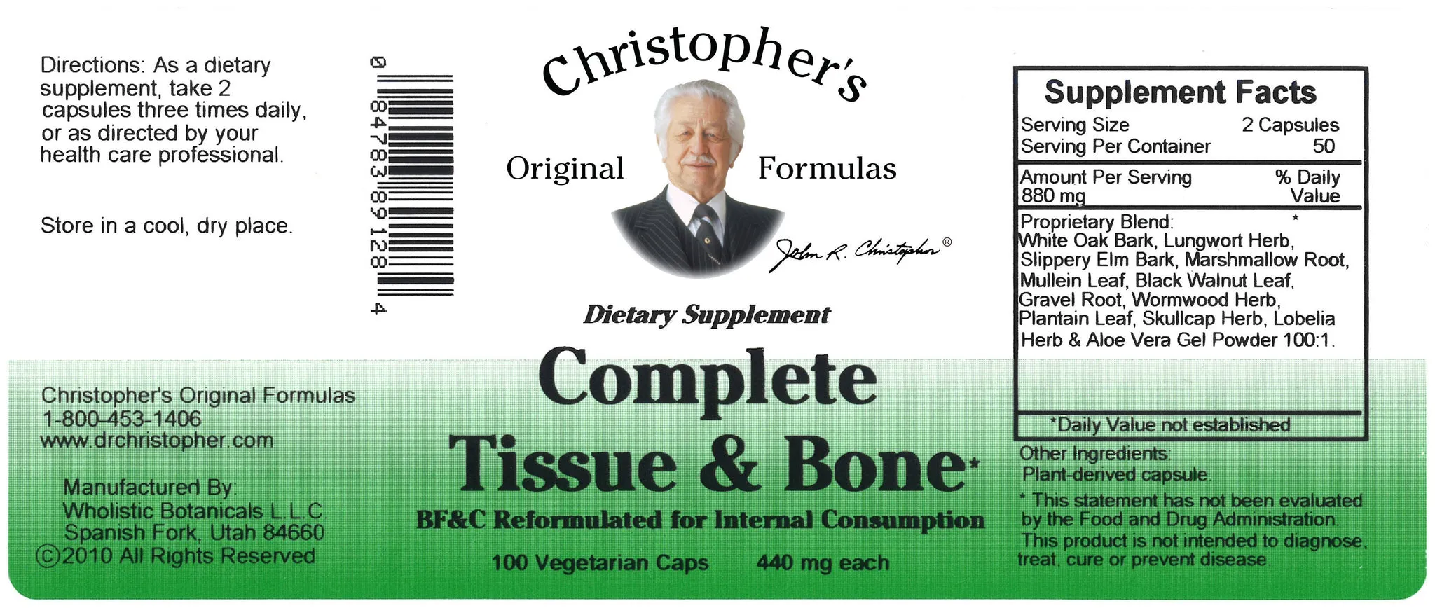 Complete tissue and bone 100 capsules is a powerful herbal blend designed to support tissue repair, bone health and overall recovery. This time tested formula promotes healing of muscles, ligaments and joints while nourishing the body naturally. Made with high-quality botanicals, it ensures optimal absorption and effectiveness. Ideal for daily support of mobility and healing
