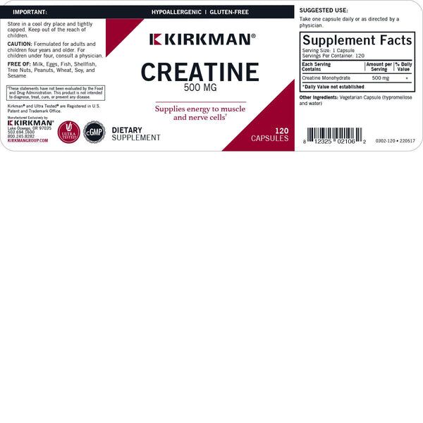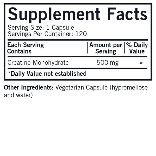 Creatine 500mg capsules provide a pure, hypoallergenic formula to supports muscle strength, power and overall athletic performance.