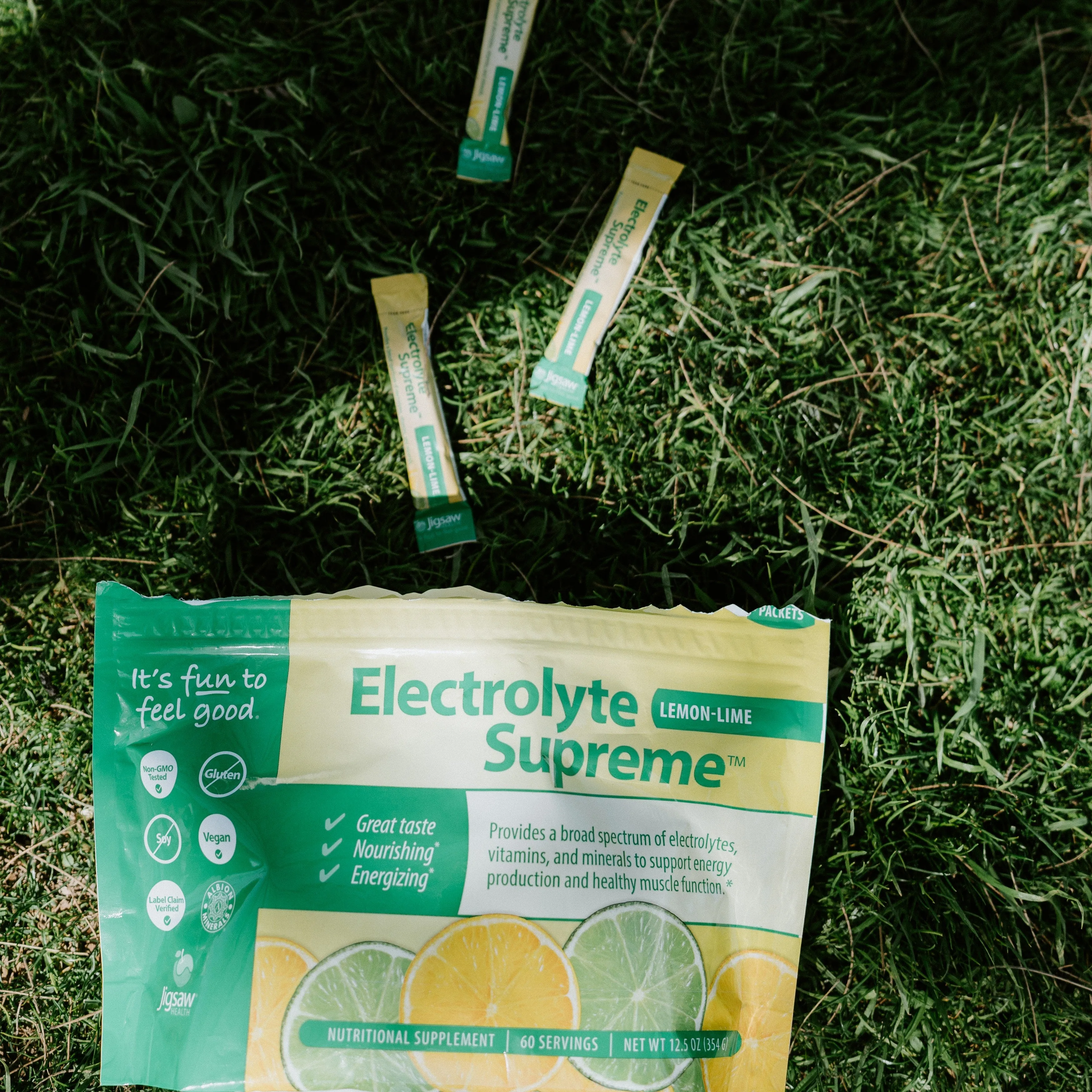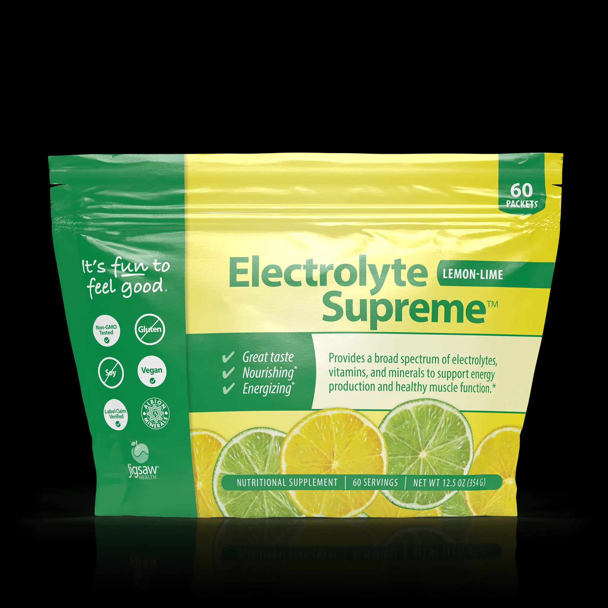 Jigsaw Electrolyte Supreme™ is a high-quality, full-spectrum electrolyte powder enriched with essential minerals and vitamins, turning plain water into a revitalizing, energy-enhancing drink for the whole family.