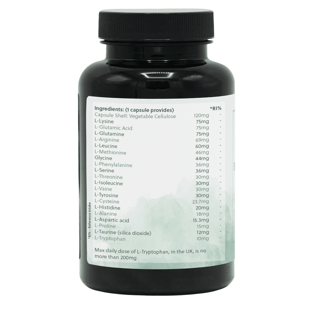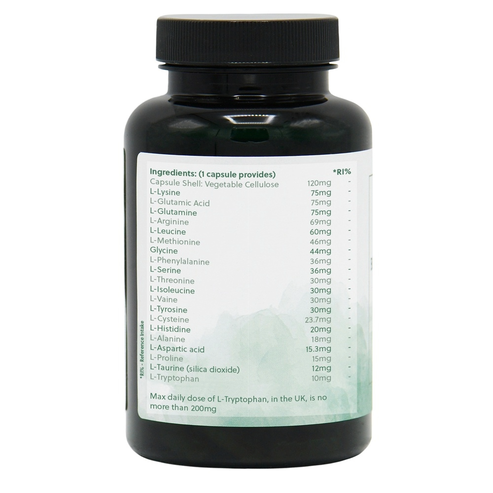 - What are the main ingredients in this supplement? The capsule contains a full spectrum of 20 amino acids, including essential ones like L-glutamine, L-leucine, L-lysine and others