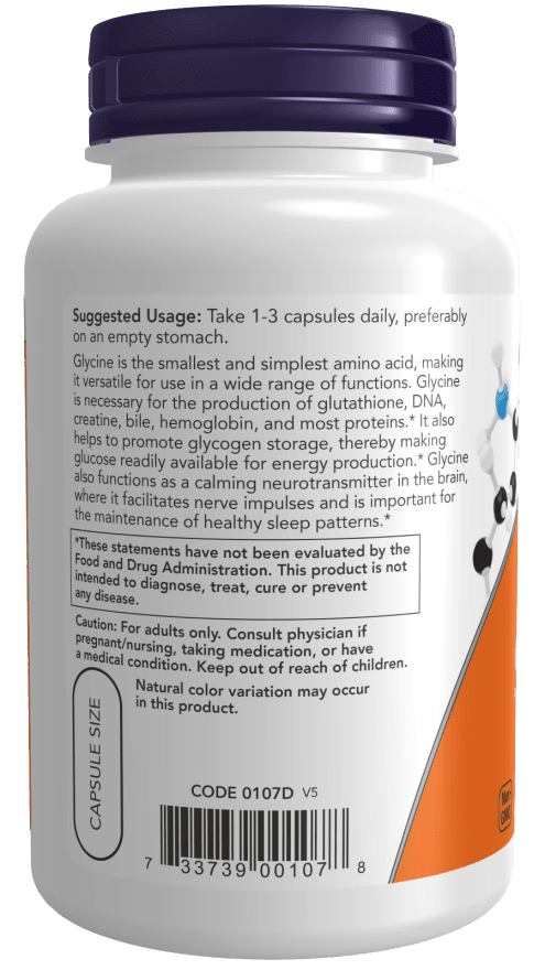 It is essential for producing glutathione, DNA, creatine, bile, hemoglobin and many proteins.* Glycine also supports glycogen storage, ensuring glucose is available for energy production.* Additionally, it acts as a calming neurotransmitter in the brain, aiding nerve impulses and supporting healthy sleep patterns*