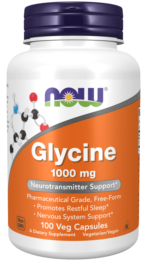 Glycine supports a variety of functions in the body, including the production of glutathione, DNA, creatine, bile, hemoglobin and proteins. It also helps with glycogen storage for energy production and promotes restful sleep by functioning as a calming neurotransmitter in the brain - How does glycine contribute to restful sleep?