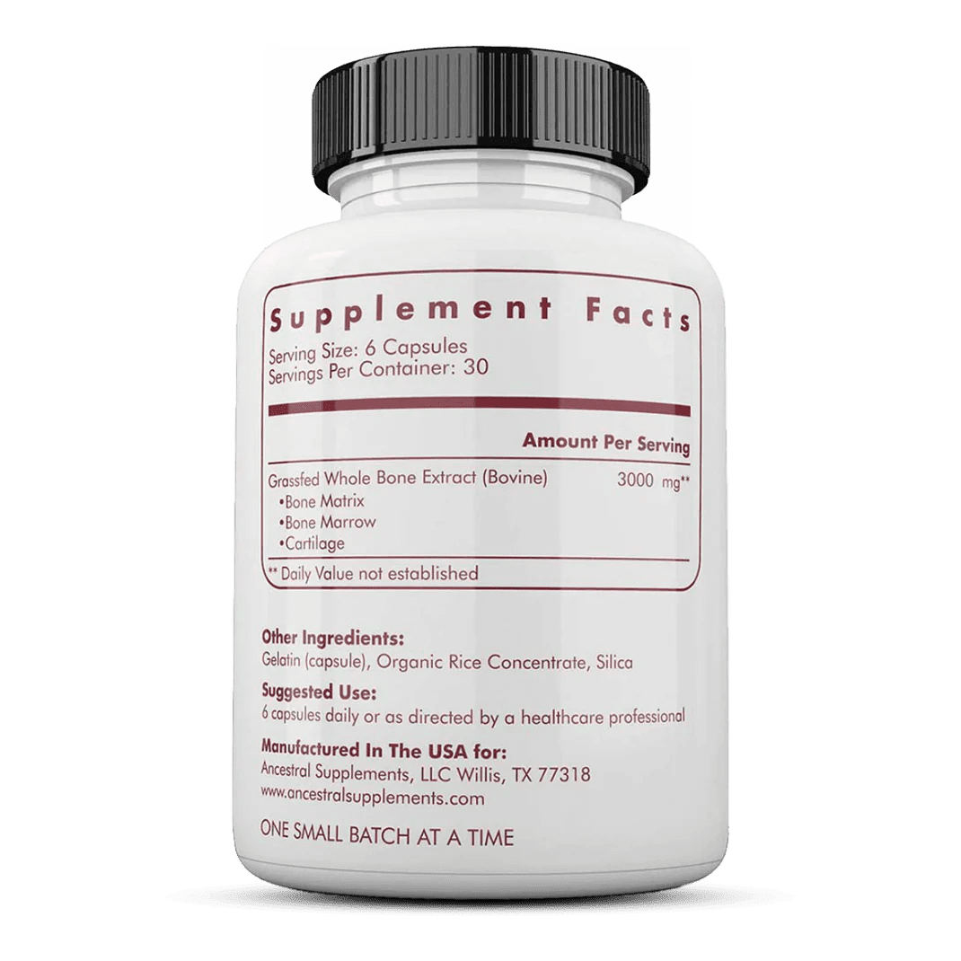 | Grassfed whole bone extract [(Bovine), Bone matrix, Bone marrow, Cartilage] | 3000mg | * |