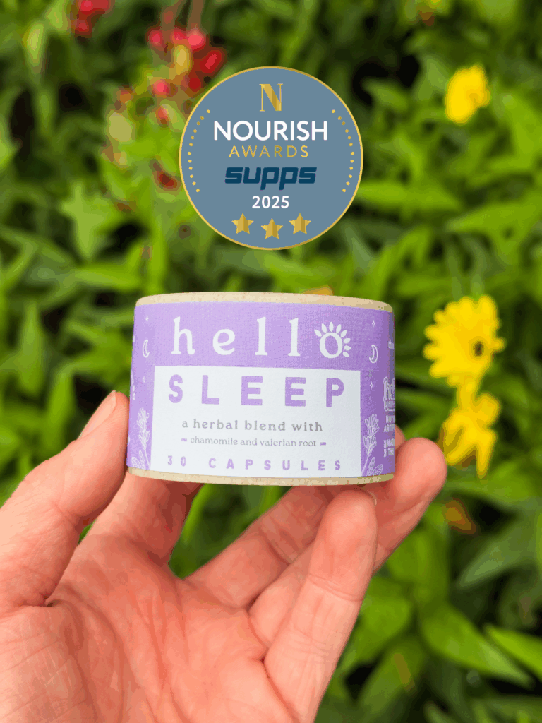 Hello Sleep is a herbal blend designed to support a better night’s rest.