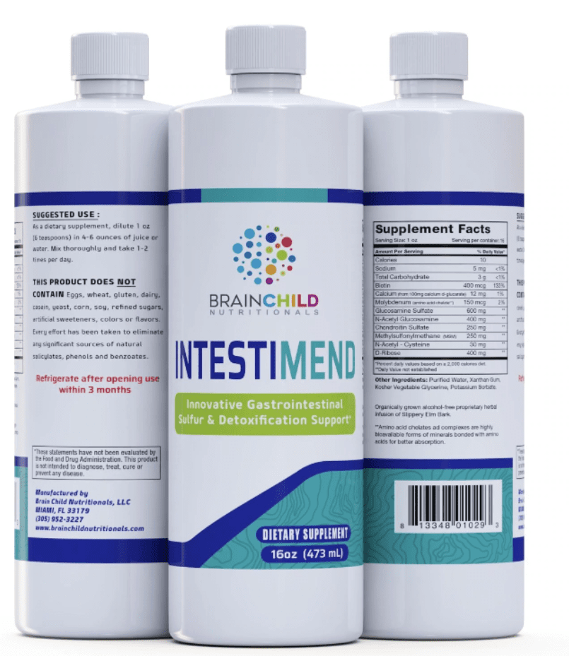IntestiMend is designed to provide precursor, multi-elemental and catalyst support for the cellular protective barrier called Glycosaminoglycans (GAGS), which are predominantly composed of sulfur-bearing amino acids bonded to polysaccharide sugar molecules, which are very often dysfunctional in the damaged intestines of children on The Spectrum.