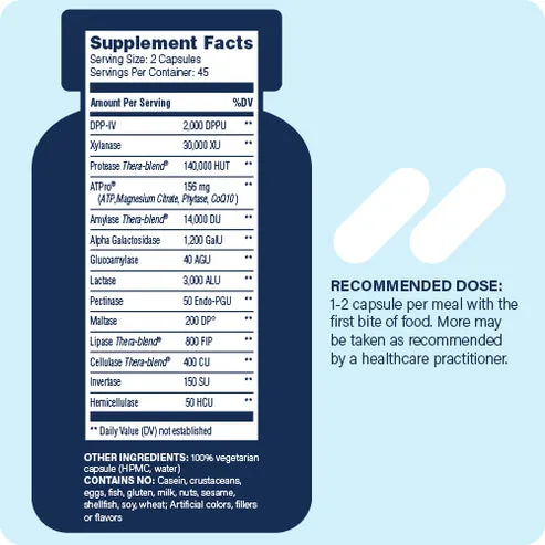 Take 1-2 capsules per meal with the first bite of food. More may be taken as recommended by a healthcare practitioner