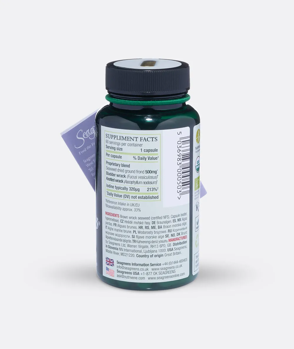 Proprietary blend [Seaweed dried ground frond, bladder wrack (Fucus vesiculosus), Knotted wrack (Ascophyllum nodosum)] | 500mg | |