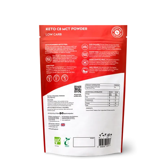 Ignite your potential with our creamy MCT oil powder, made from caprylic acid (C8) Medium Chain Triglycerides—the ultimate fuel for ketone production.