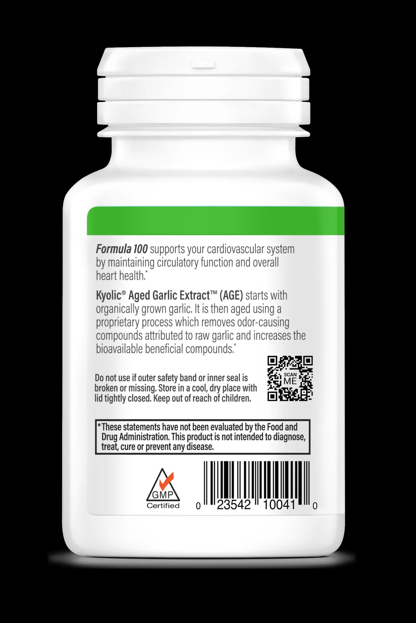 Kyolic® Aged Garlic Extract™ Formula 100 supports cardiovascular health with 600mg of Aged Garlic Extract (AGE) per serving (2 tablets/capsules), with a recommended intake of two servings per day. Regular use of this original formula helps maintain circulatory function and overall heart health.*As the best-selling, odorless aged garlic extract, Kyolic AGE is backed by over 900 published scientific studies confirming its safety, effectiveness and numerous health benefits