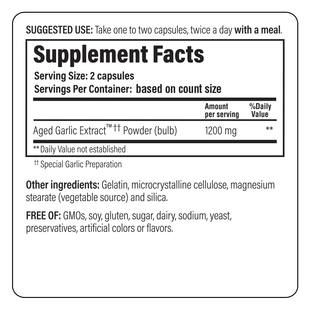 Kyolic® Aged Garlic Extract™ Reserve Cardiovascular delivers 1200mg of AGE per serving (two capsules), with a recommended intake of one to two servings daily.