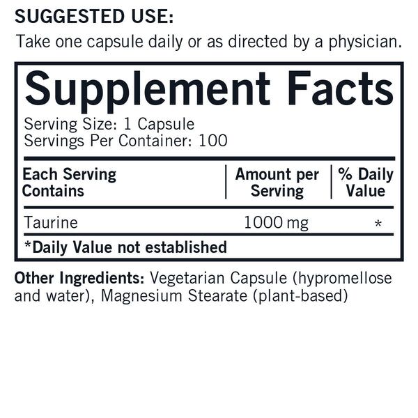 L-Taurine acts as a calming neurotransmitter and supports antioxidant activity in white blood cells, aiding immune defense - How much L-Taurine is in each capsule?
