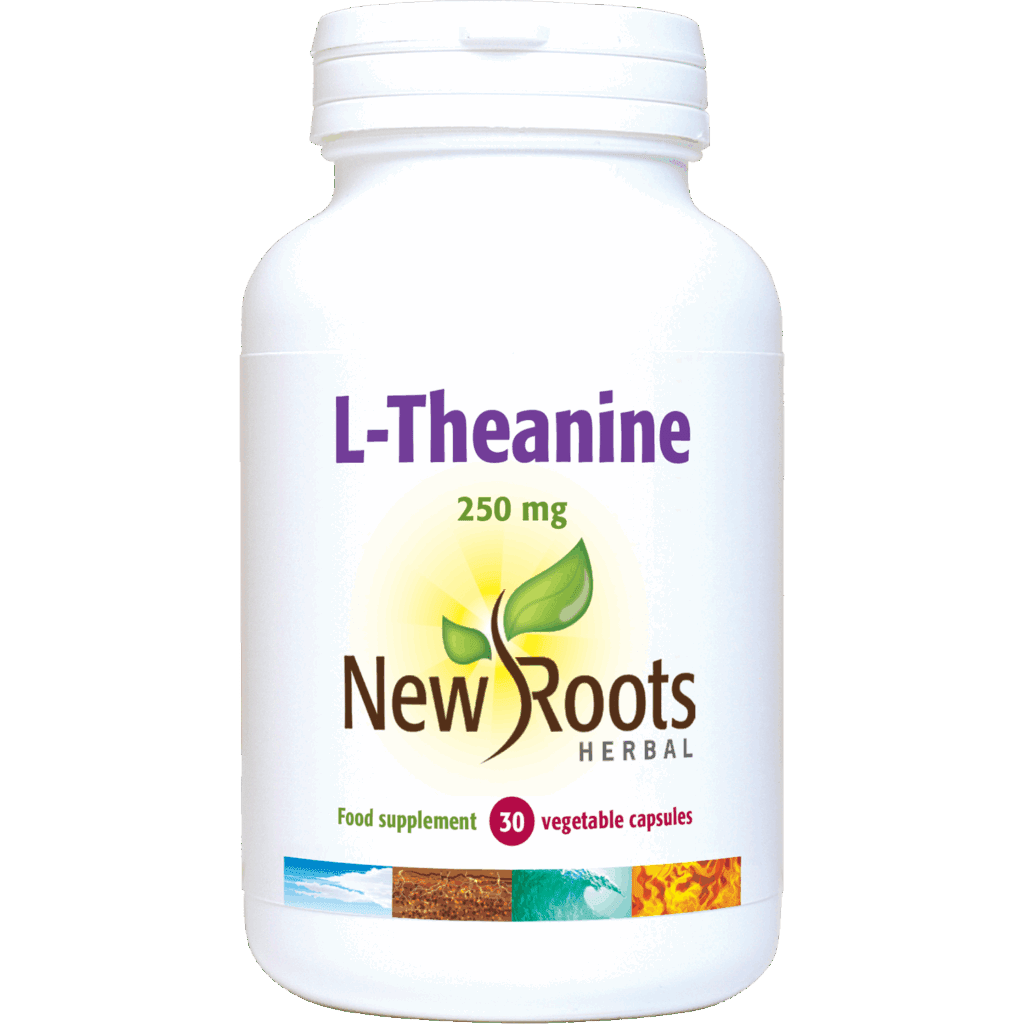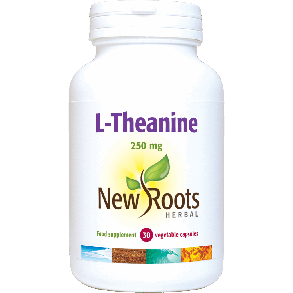 New Roots Herbal FE1786 L-Theanine 30 Capsules is a plant-based supplement designed to support relaxation and mental clarity.
