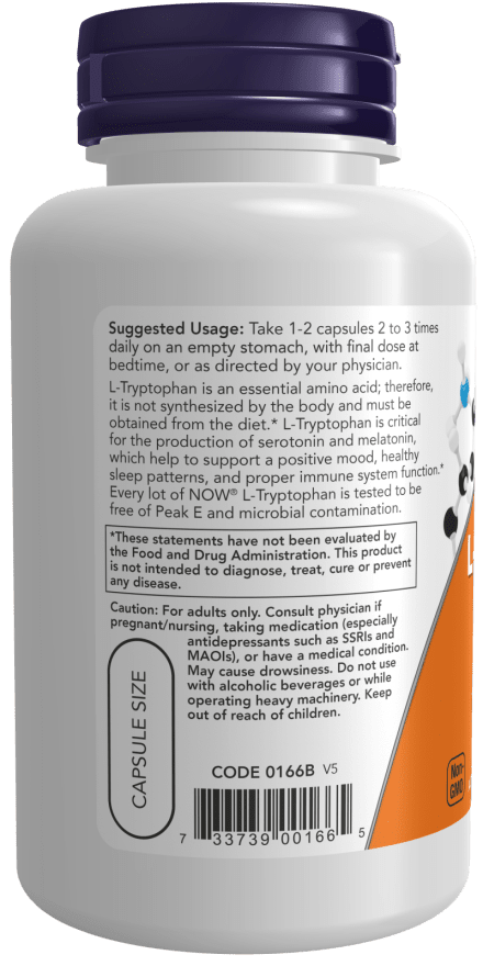 now® L-Tryptophan is rigorously tested for purity, free from Peak E and microbial contamination