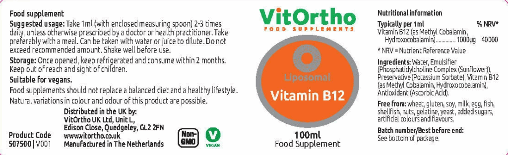 Water, Emulsifier (Phosphatidylcholine Complex (Sunflower)), Preservative (Potassium Sorbate), Vitamin B12 (as Methyl Cobalamin, Hydroxocobalamin), Antioxidant (Ascorbic Acid)