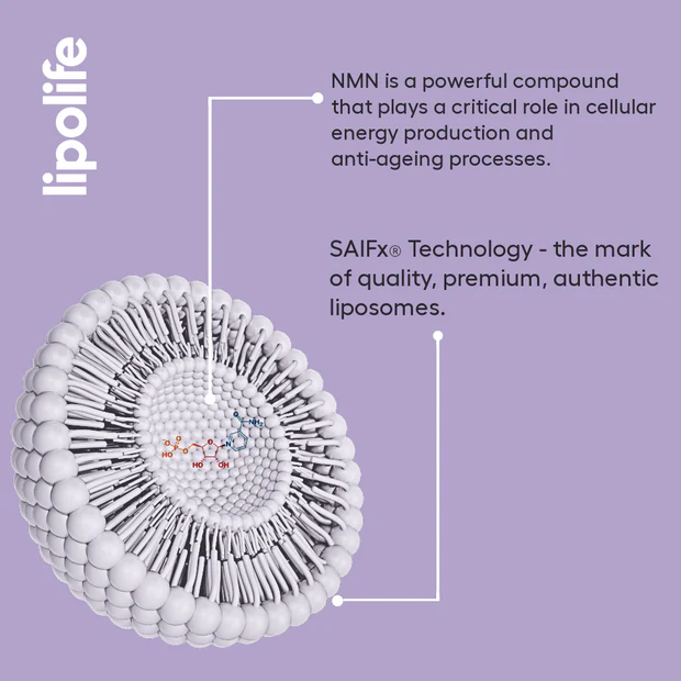 lipolife® Liposomal NMN offers an advanced solution for those looking to support healthy ageing by effectively boosting NAD⁺ levels through superior absorption and bioavailability.