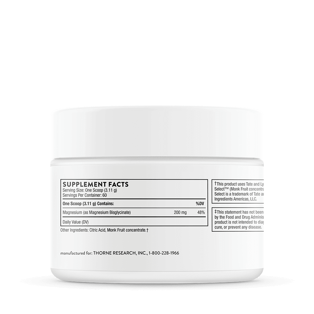 Thorne Magnesium Bisglycinate Powder is a gentle, easily absorbable magnesium supplement, designed to support relaxation, mood, and overall well-being in an easy-to-mix daily powder.