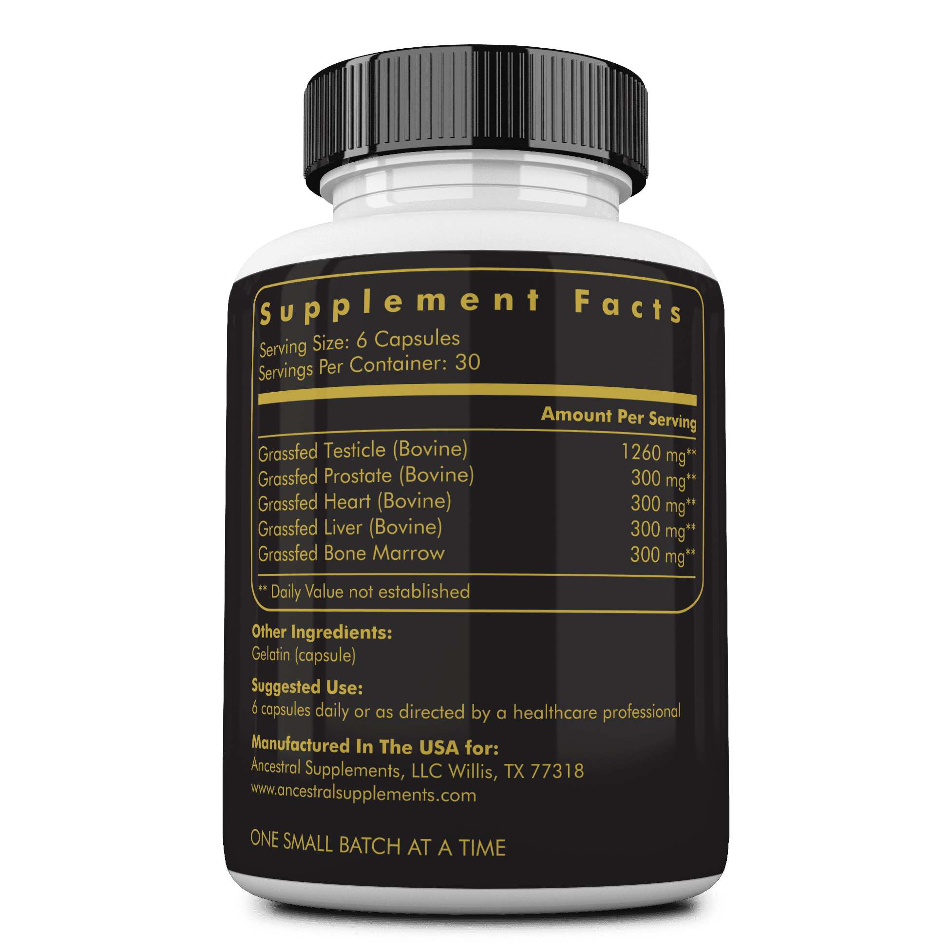 MOFO is a whole-food supplement designed to provide the essential raw ingredients for men’s vitality: testicle, prostate, heart, liver and bone marrow. It contains specific building blocks, peptides and enzymes that nourish and support testosterone, reproductive health, prostate function and heart health