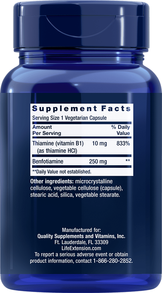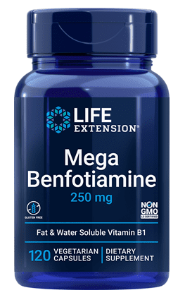 Benfotiamine, a fat-soluble form of vitamin B1, supports healthy blood sugar metabolism and protects against oxidative stress and glycation. Mega Benfotiamine delivers 250mg of benfotiamine and 10mg of thiamine for comprehensive metabolic support.