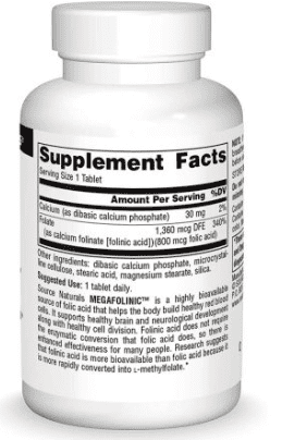 Source Naturals MEGAFOLINIC™ is a highly bioavailable source of folic acid that helps the body build healthy red blood cells. It supports healthy brain and neurological development along with healthy cell division. Folinic acid does not require the enzymatic conversion that folic acid does, so there is enhanced effectiveness for many people. Research suggests that folinic acid is more bioavailable than folic acid because it is more rapidly converted into L-methylfolate.