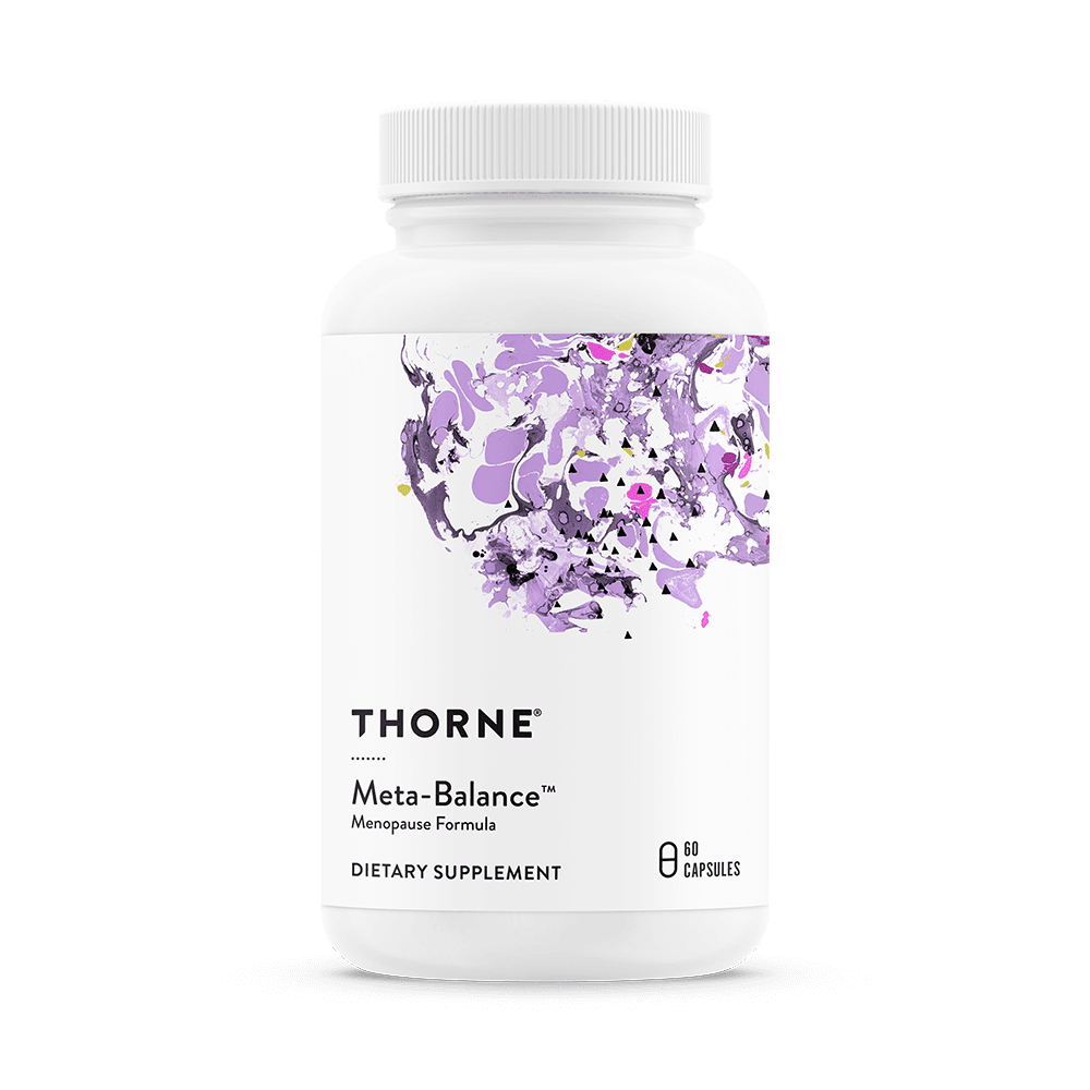 Thorne’s Meta-Balance is a botanical supplement designed to support women’s hormonal balance, especially during perimenopause and menopause. It uses a blend of natural ingredients to help balance estrogen and progesterone levels, while addressing symptoms like hot flashes, mood swings and menstrual discomfort - Can Meta-Balance help with menstrual discomfort and PMS?