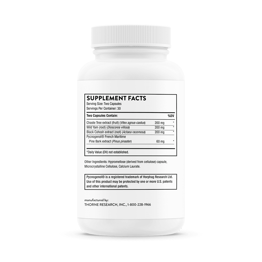 Its botanical blend, featuring chaste tree, black cohosh, wild yam and pycnogenol, supports women through perimenopausal and menopausal symptoms by balancing estrogen and progesterone levels.
