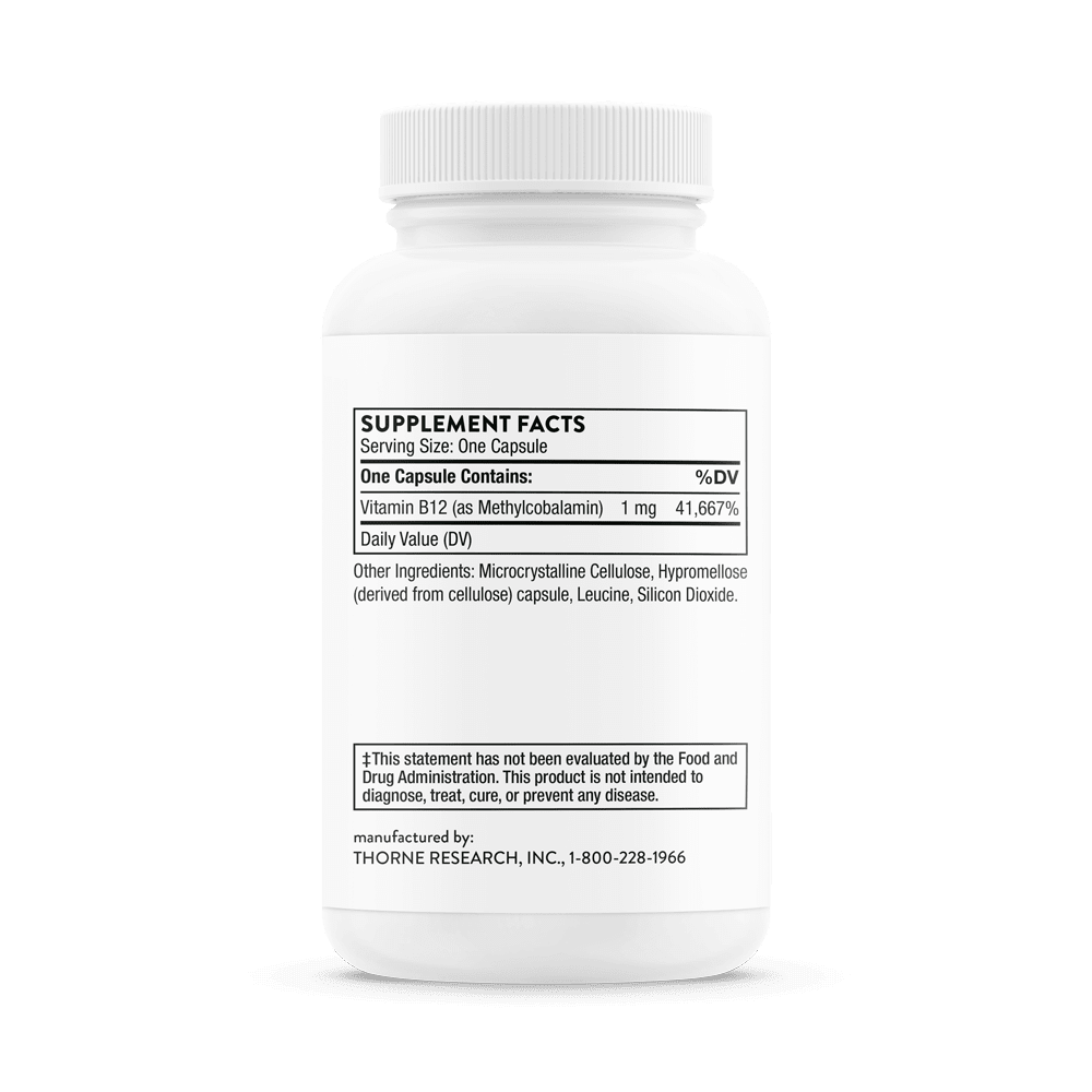 Thorne’s Vitamin B12 delivers methylcobalamin, the active form of B12 for better absorption and support of heart health, sleep, nerve function and blood cell production. Unlike cyanocobalamin, which requires liver conversion, methylcobalamin is tissue-ready and efficiently retained in the body. Third-party tested for purity and safety, it ensures high-quality, contaminant-free supplementation
