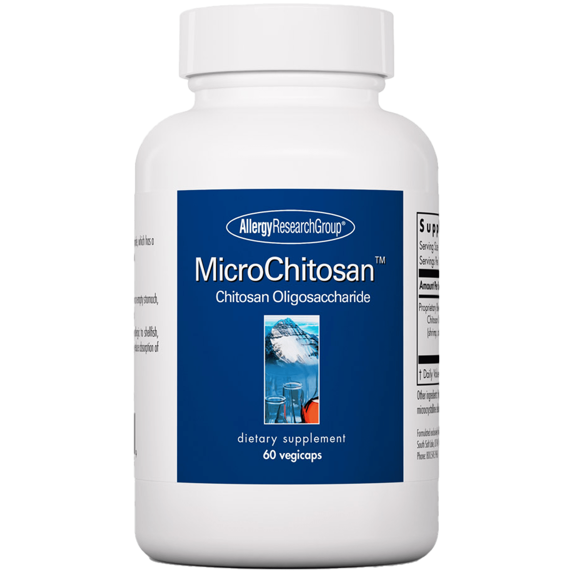 MicroChitosan offers 60 capsules of purified chitosan, a natural polysaccharide derived from shellfish. Designed to support immune health, detoxification, and gut function