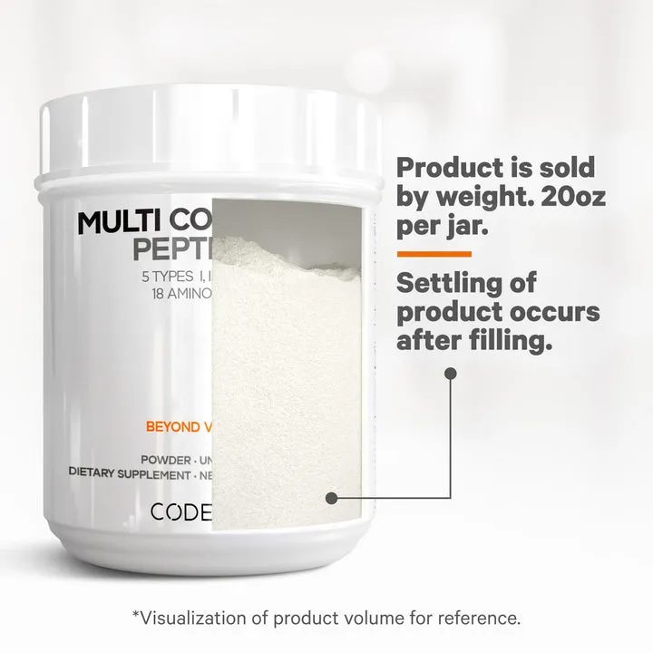 Adults take 1-2 scoops of Codeage Multi Collagen with 8-12 ounces of water or your favorite beverage or as directed by a qualified healthcare practitioner
