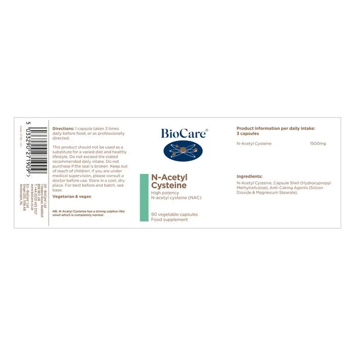 N-acetyl cysteine (NAC) 90 capsules is a high quality supplement providing a stable form of cysteine, a key precursor to glutathione, the body's master antioxidant.